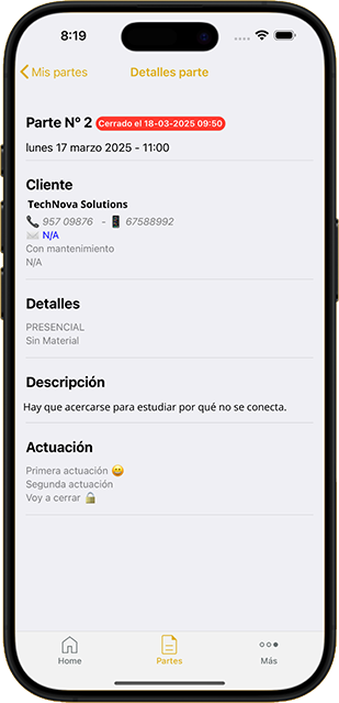 Administra fácilmente los partes de trabajo y mantén un seguimiento detallado de cada incidencia.